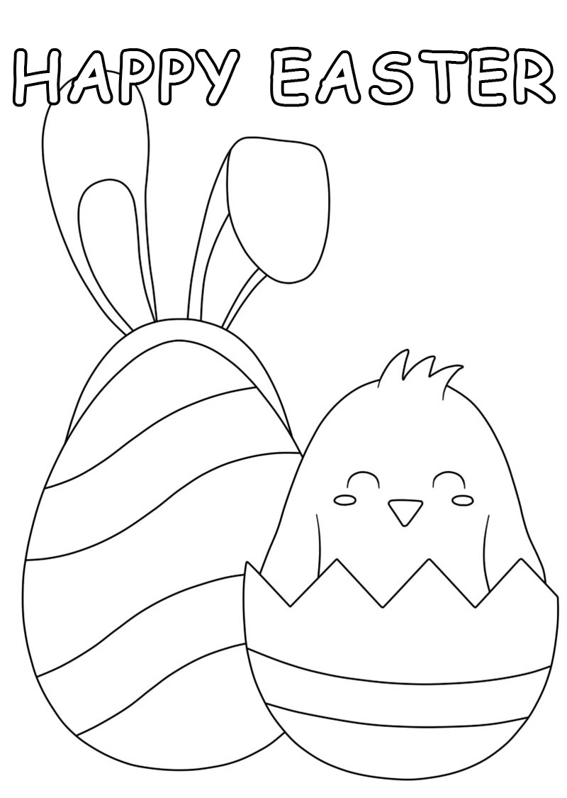 Coloring Page Easter Page / Happy Easter Chick Coloring Page Newborn Chick Sitting On Easter Eggs Coloring Page Canstock /